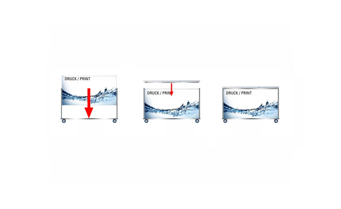 Durch einen eingelegten Foliendruck wird Ihr Logo, eine Graphik oder ein Photo auf der gesamten Frontseite hinterleuchtet.